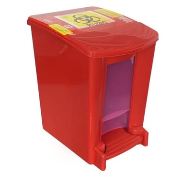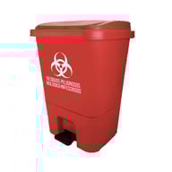 CESTO CON PEDAL PARA RESIDUOS PELIGROSOS BIOLÓGICO INFECCIOSOS MODELO: SB 8519RJ COLOR: ROJO PESO: 1.59 KG CAPACIDAD: 17 LT MEDIDAS: ALTO: 43.0 cm LARGO: 31.5 cm ANCHO: 28.6 cm 2 PIEZA POR CAJA