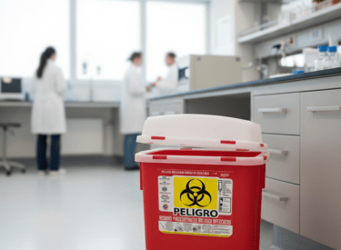 Su uso es obligatorio en establecimientos de atención médica conforme a la NOM-087-SEMARNAT-SSA1, y deben ser rojos o amarillos, resistentes, con señalización de riesgo biológico claramente visible.