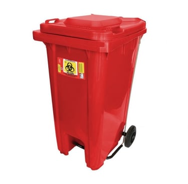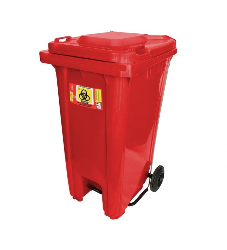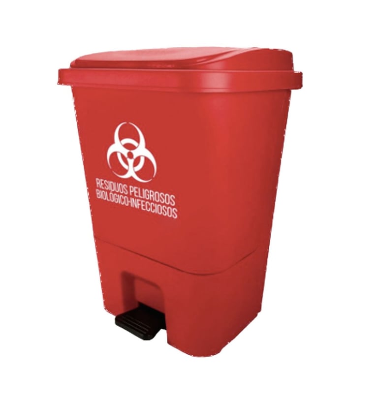 CONTENEDOR CON PEDAL MODELO: SB 8609 RPBI COLOR: ROJO. CON ETIQUETAS PARA RESIDUOS INFECIOSOS BIOLOGICOS. CAPACIDAD: 80 LT PESO:7.8 KG MEDIDAS: LARGO: 54.0 cm ANCHO: 57.0 cm ALTO: 80.0 cm