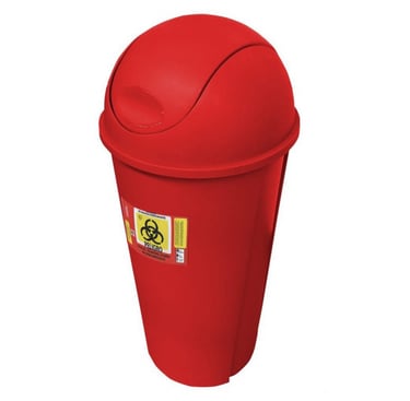 CESTO REDONDO TAPA BALANCIN CURVO MODELO: 8509 RPBI COLOR: ROJO O AMARILLO. CON ETIQUETAS PARA RESIDUOS INFECIOSOS BIOLOGICOS. PESO: 2.61 KG CAPACIDAD: 80 LT MEDIDAS: ALTO: 90.0 cm DIAMETRO: 41.0 cm